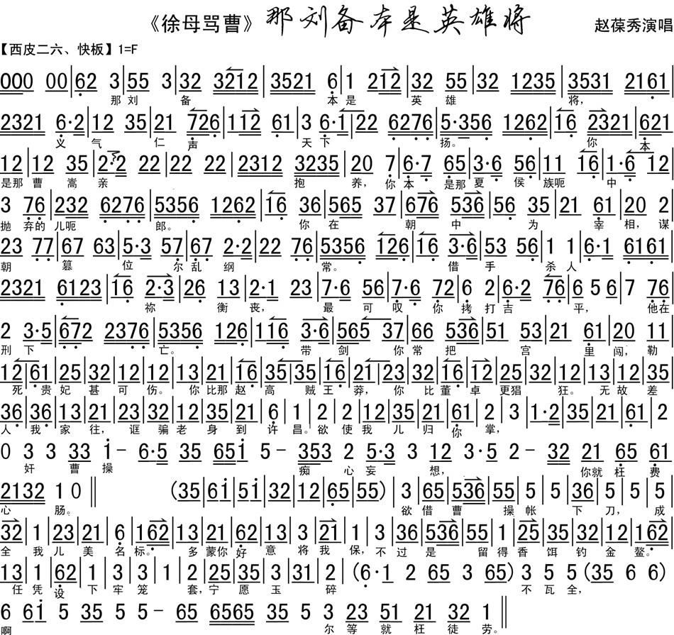 那刘备本是英雄将 徐母骂曹 选段 琴谱