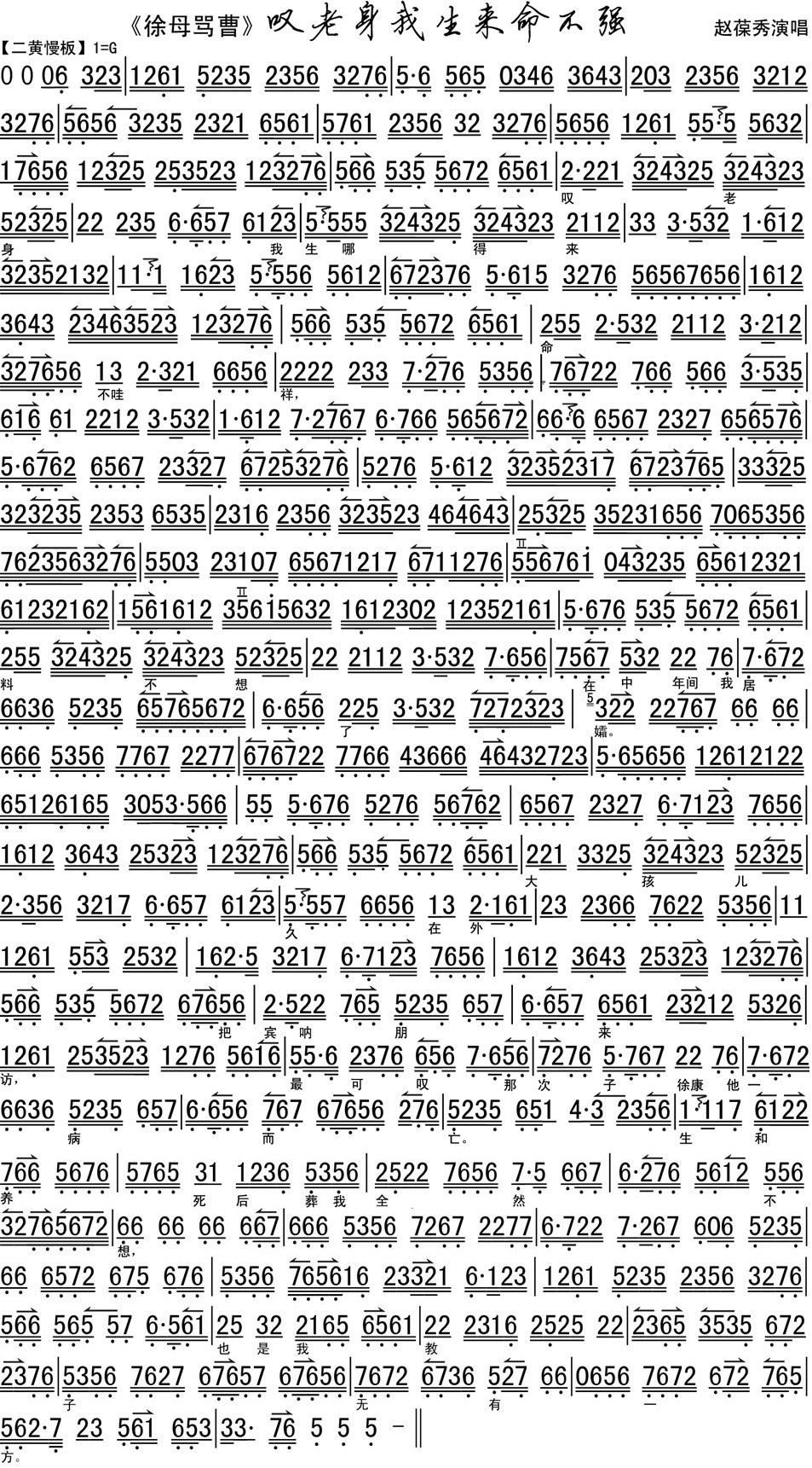叹老身我生来命不强 徐母骂曹 选段 琴谱