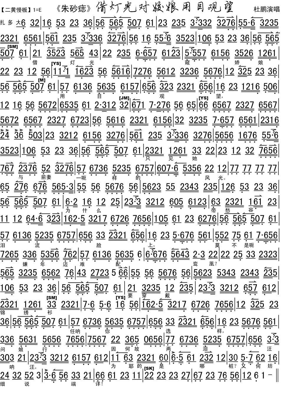 > 借灯光对娇娘用目观望 朱砂痣 选段 琴谱