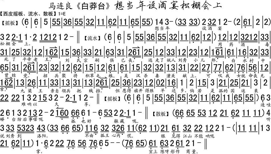 > 想当年设酒宴松棚会上 白莽台 选段 琴谱