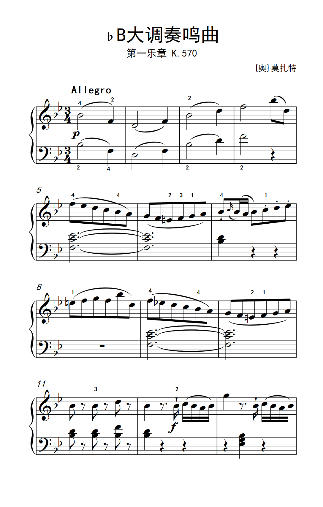 第七级1 ?B大调奏鸣曲 第一乐章 K 570 中央音乐学院 钢琴 业余 考级教程 7 9级