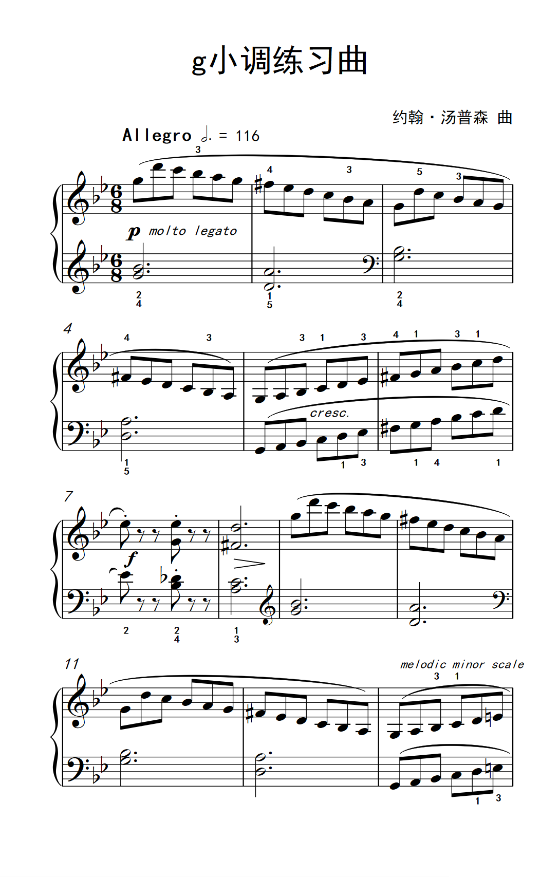 g小调练习曲 约翰 汤普森 成人钢琴教程 第三册