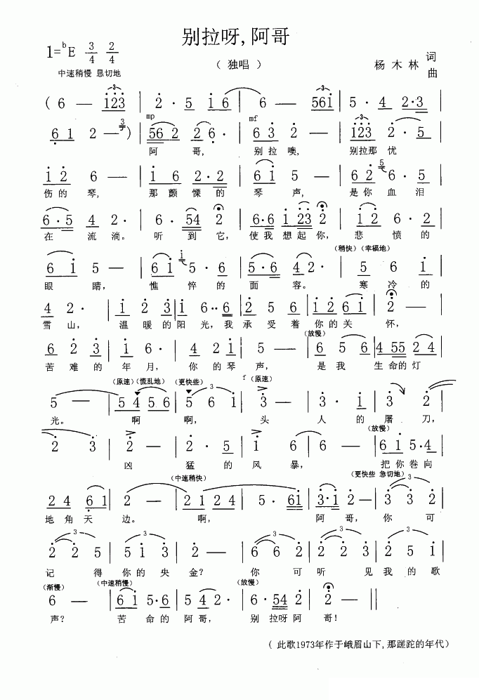 - [歌谱] 问阿哥