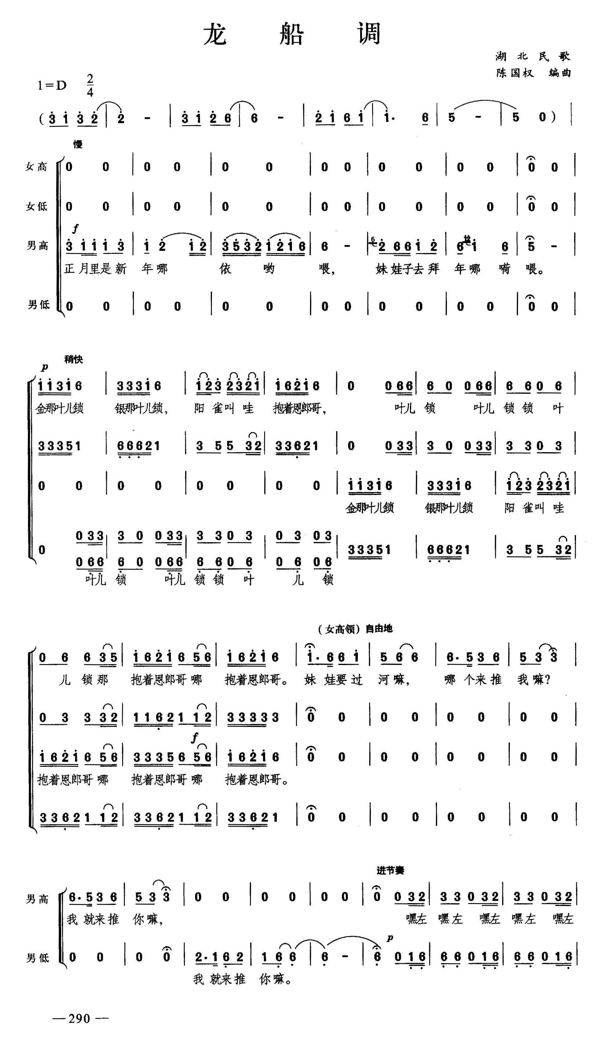 - [钢琴谱,歌谱] 龙船调 混声合唱