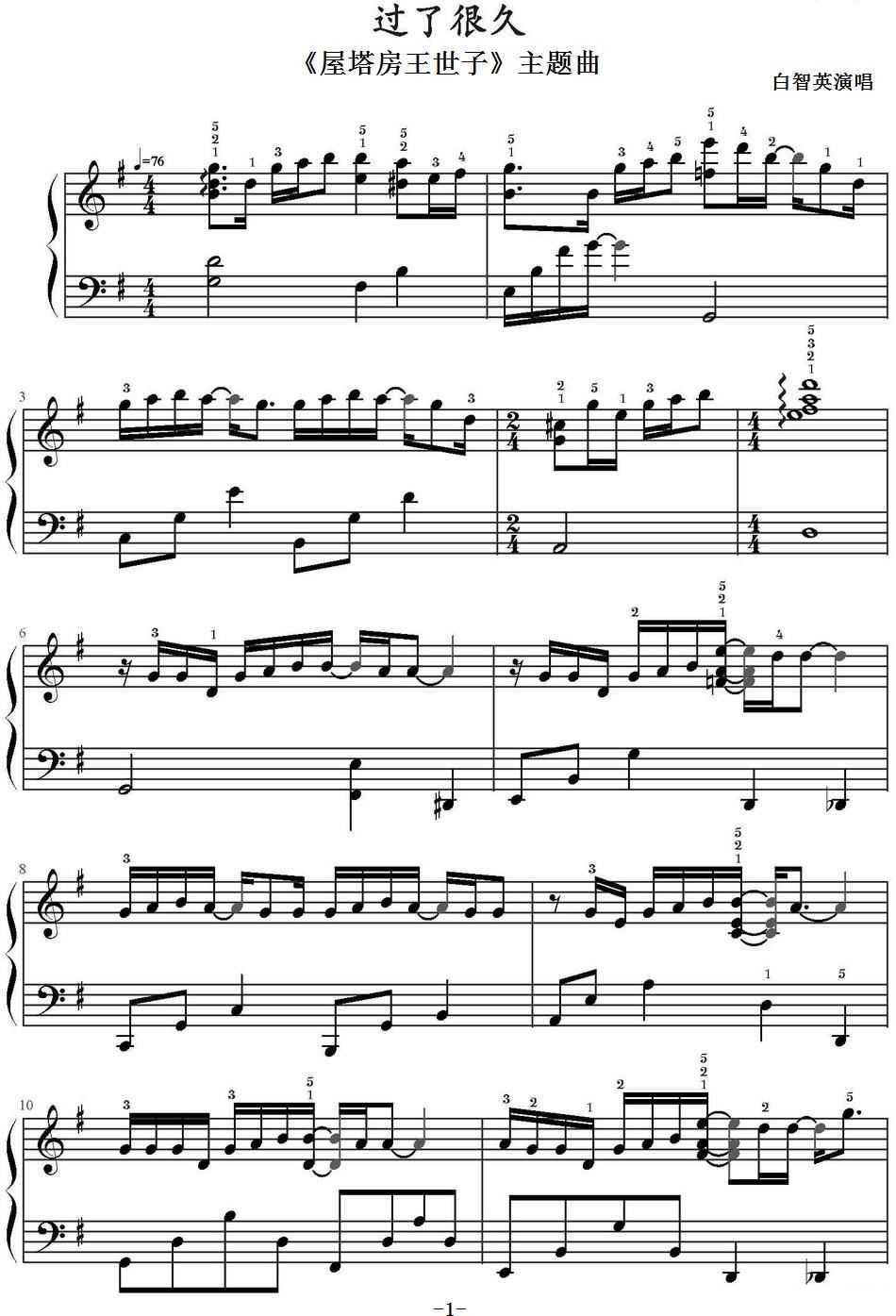 过了很久 屋塔房王世子主题曲 G调