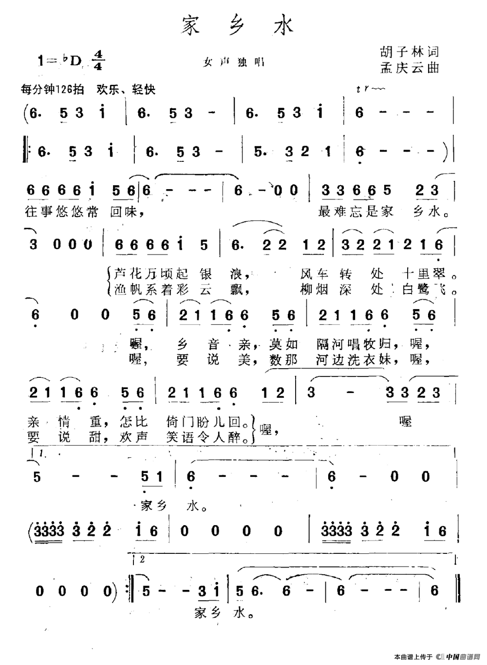 - [歌谱] 家乡水