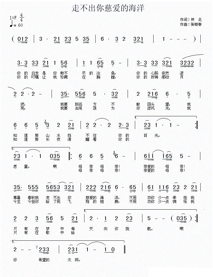 > 走不出你慈爱的海洋 张晓春曲