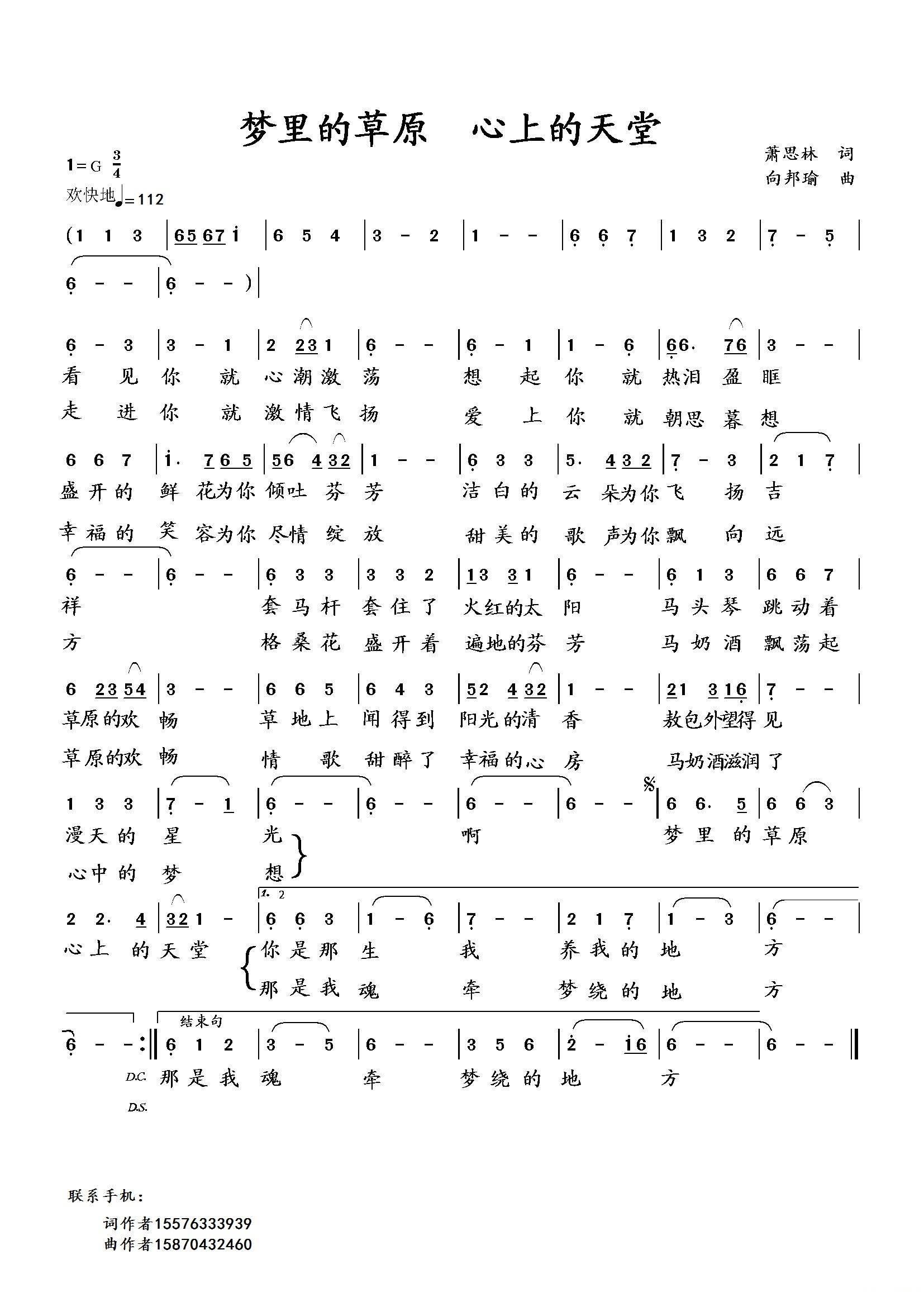 - [歌谱] 梦里的草原
