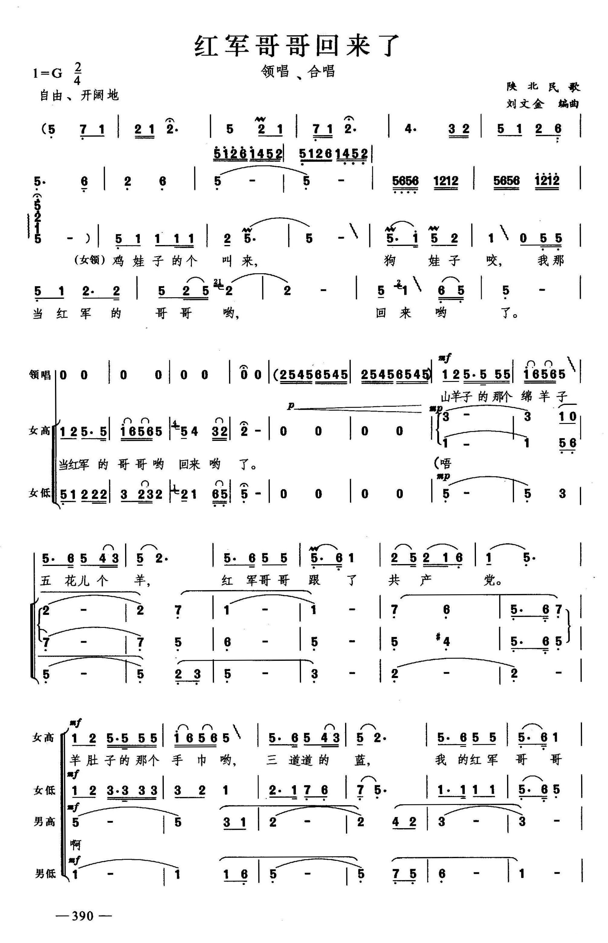 红军哥哥回来了 女声合唱 合唱谱