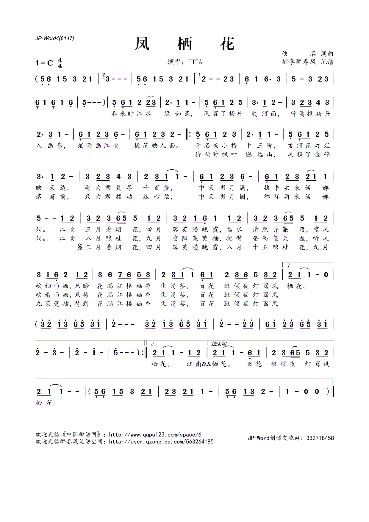 - [二胡谱,歌谱] 松窗棋罢 HITA
