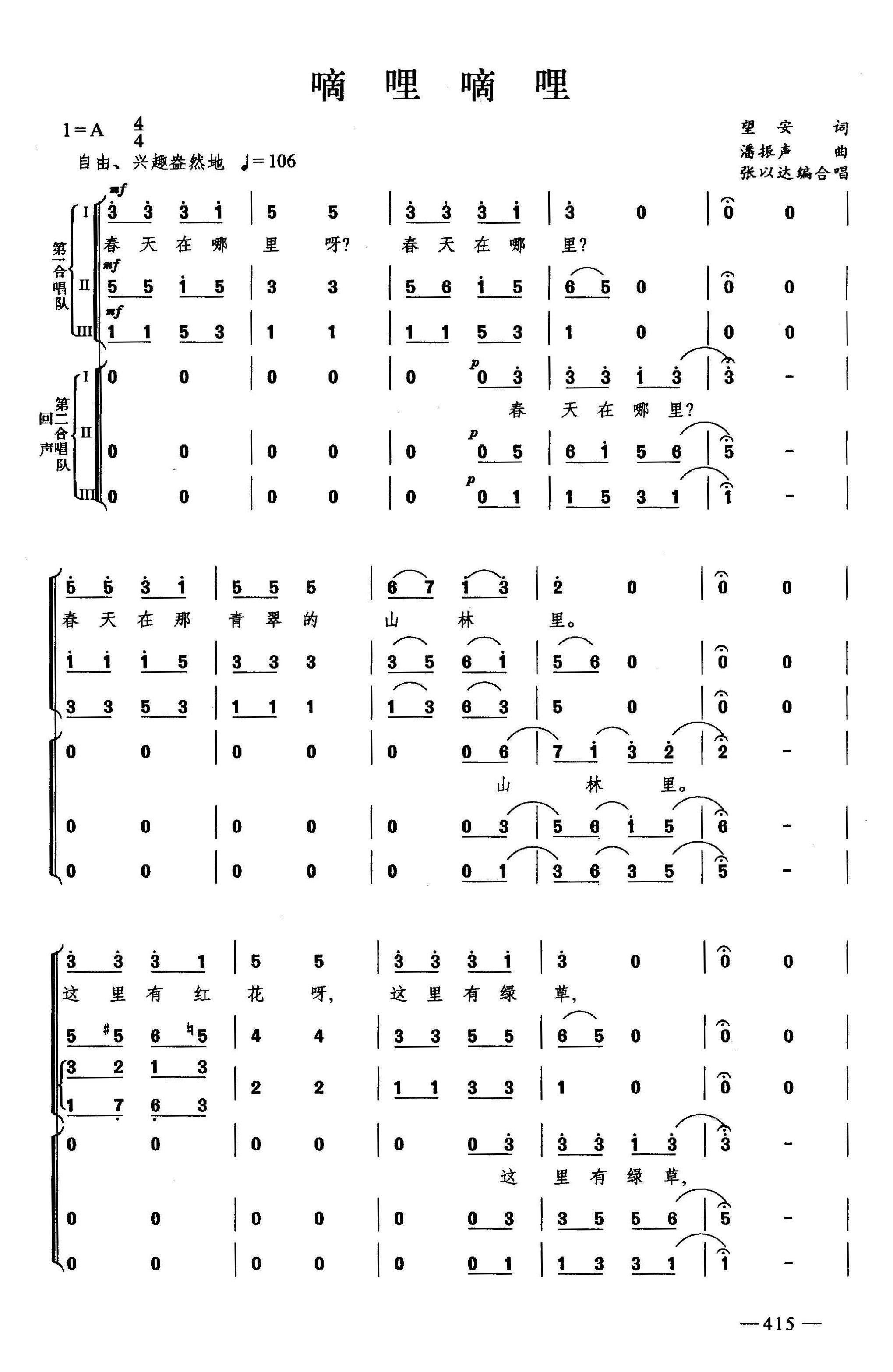 - [钢琴谱] 嘀哩嘀哩 合唱