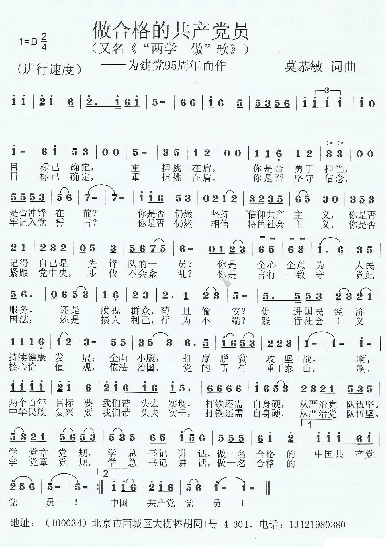 - [歌谱] 要做一名合格的党员