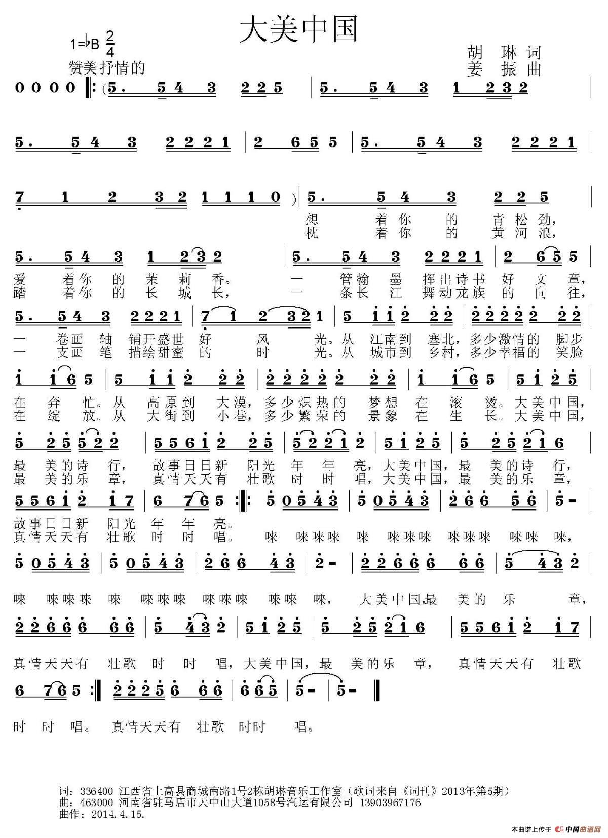 - [歌谱] 美丽中国