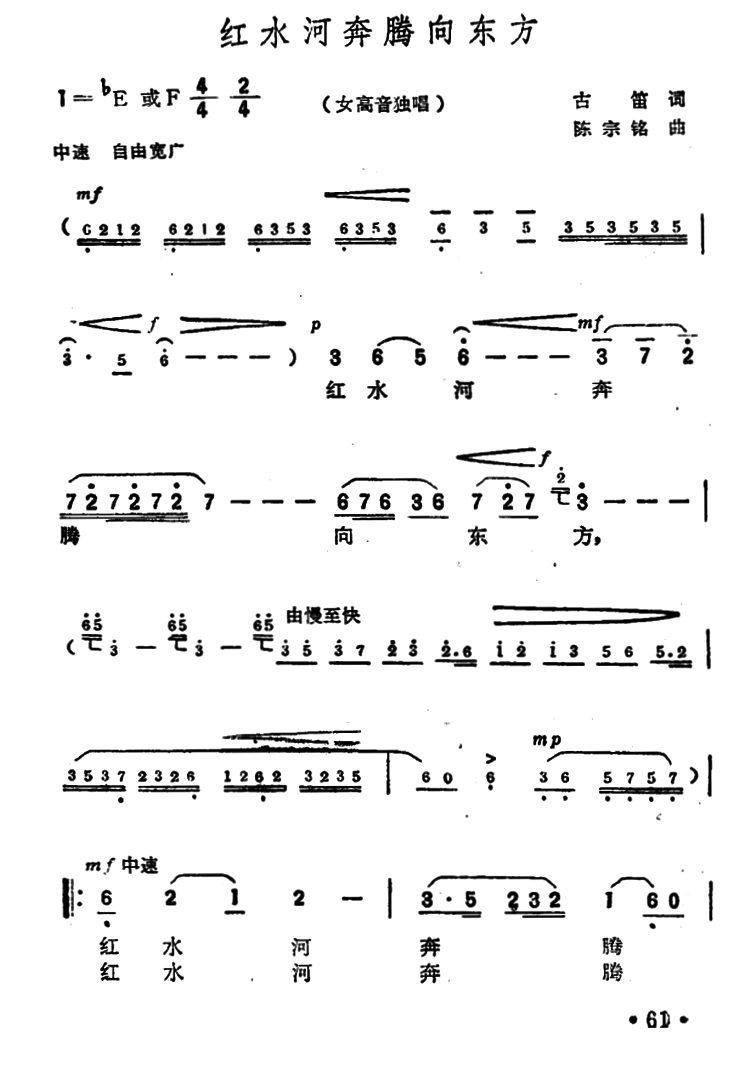 - [歌谱] 青山里流出一条红水河
