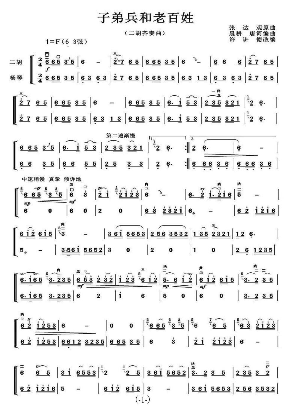 - [二胡谱] 子弟兵和老百姓 二胡齐奏曲