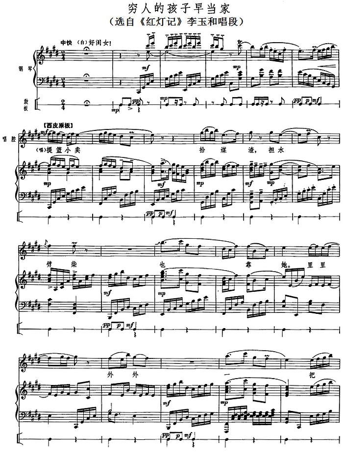 > 钢琴伴唱京剧 红灯记 穷人的孩子早当家 李玉和唱段