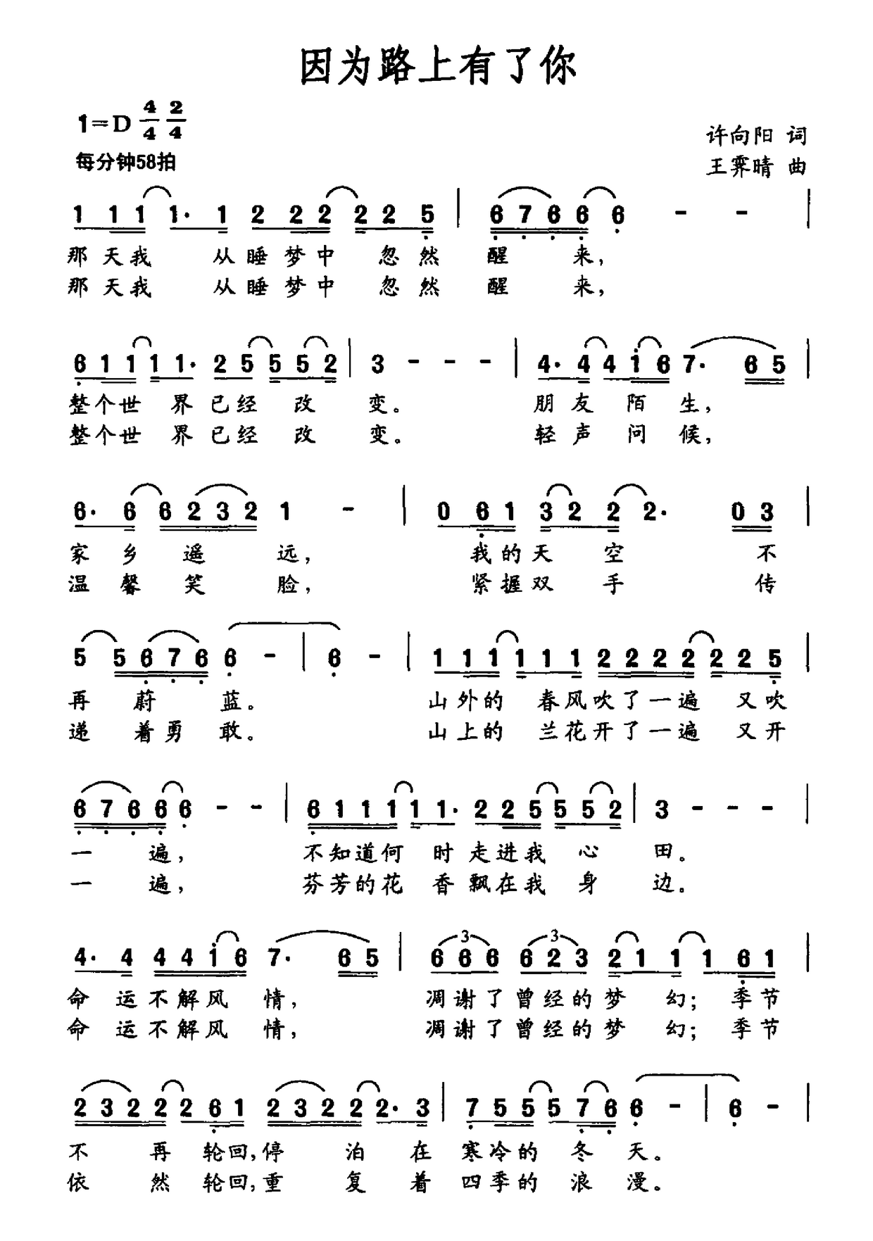 > 因为路上有了你
