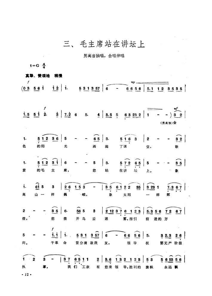 毛泽东同志主办农民运动讲习所颂歌 组歌