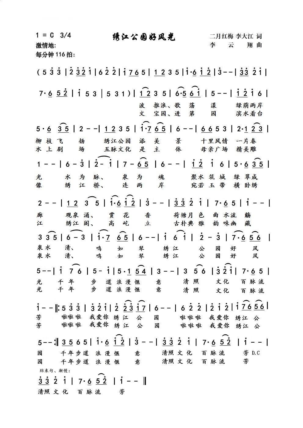 > 绣江公园好风光 章丘歌曲