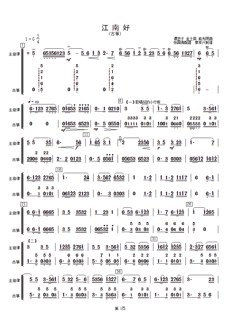 > 江南好 古筝