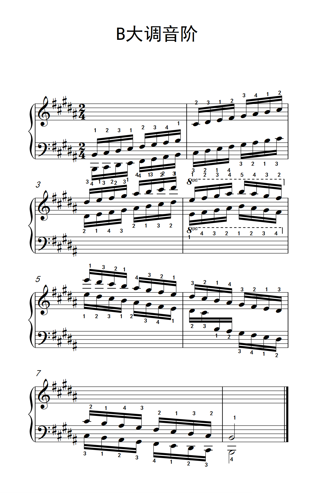> 第五级 11 B大调音阶 中央音乐学院 钢琴 业余 考级教程 4 6级