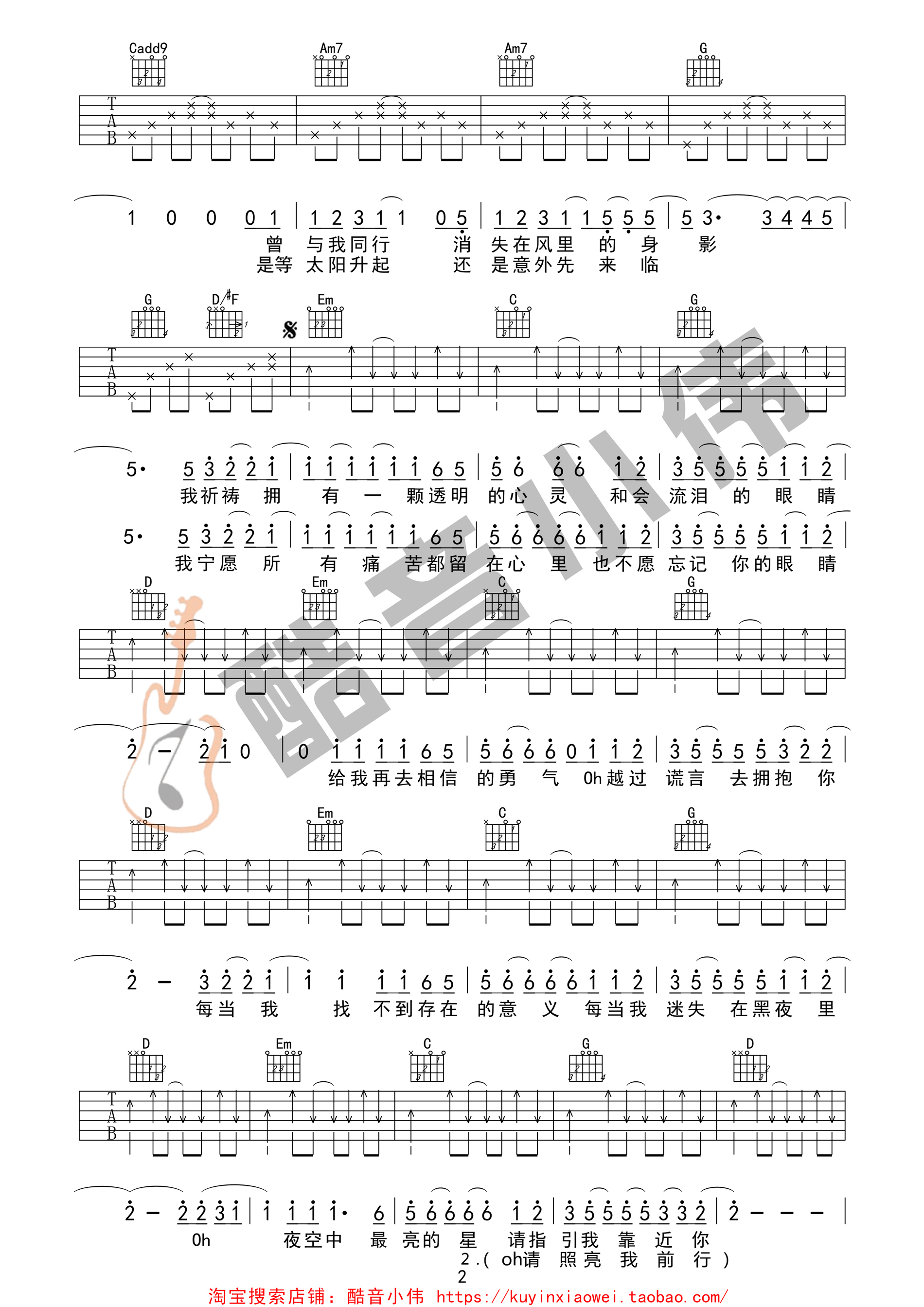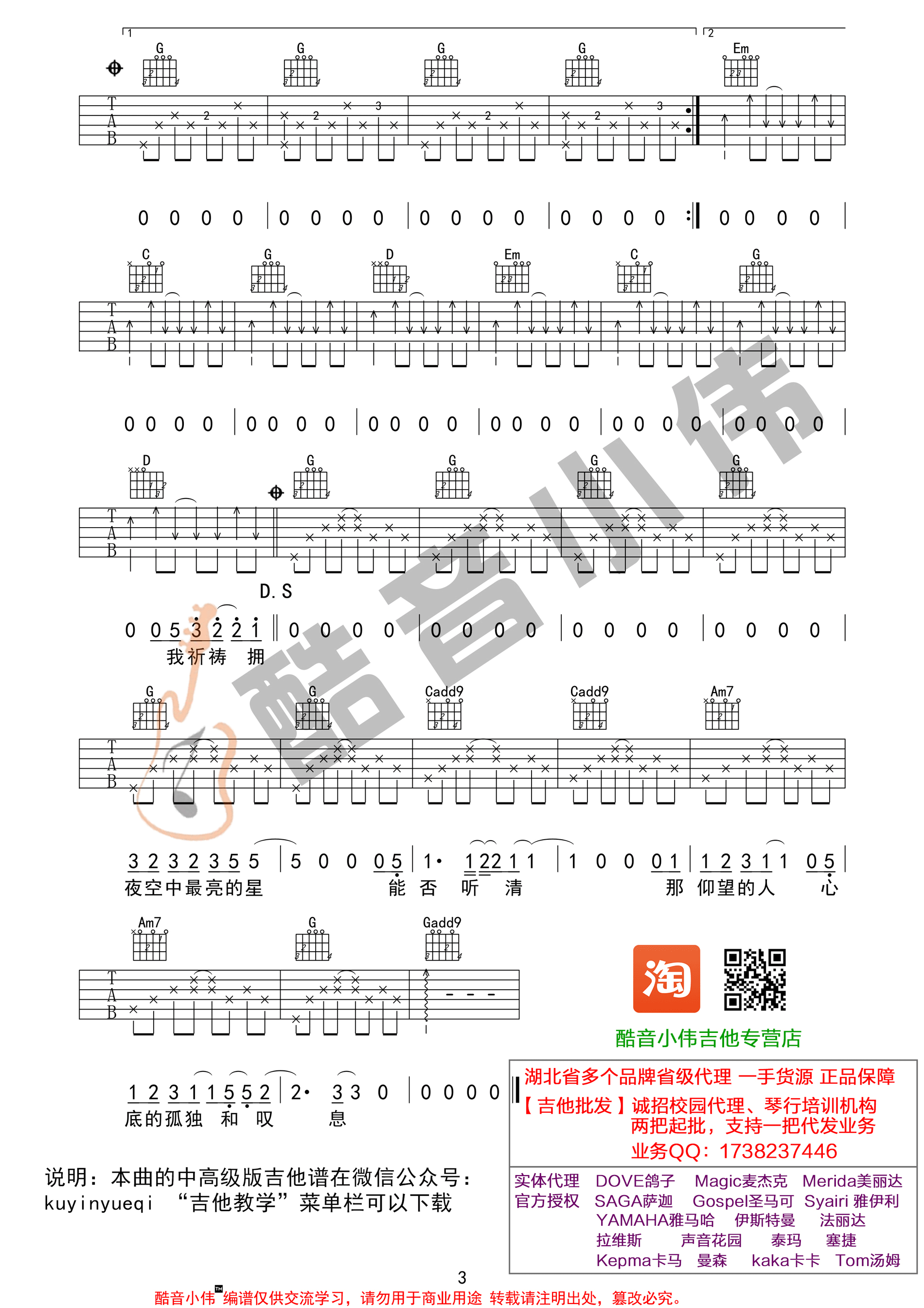 > 夜空中最亮的星 G调原版 酷音小伟吉他教学