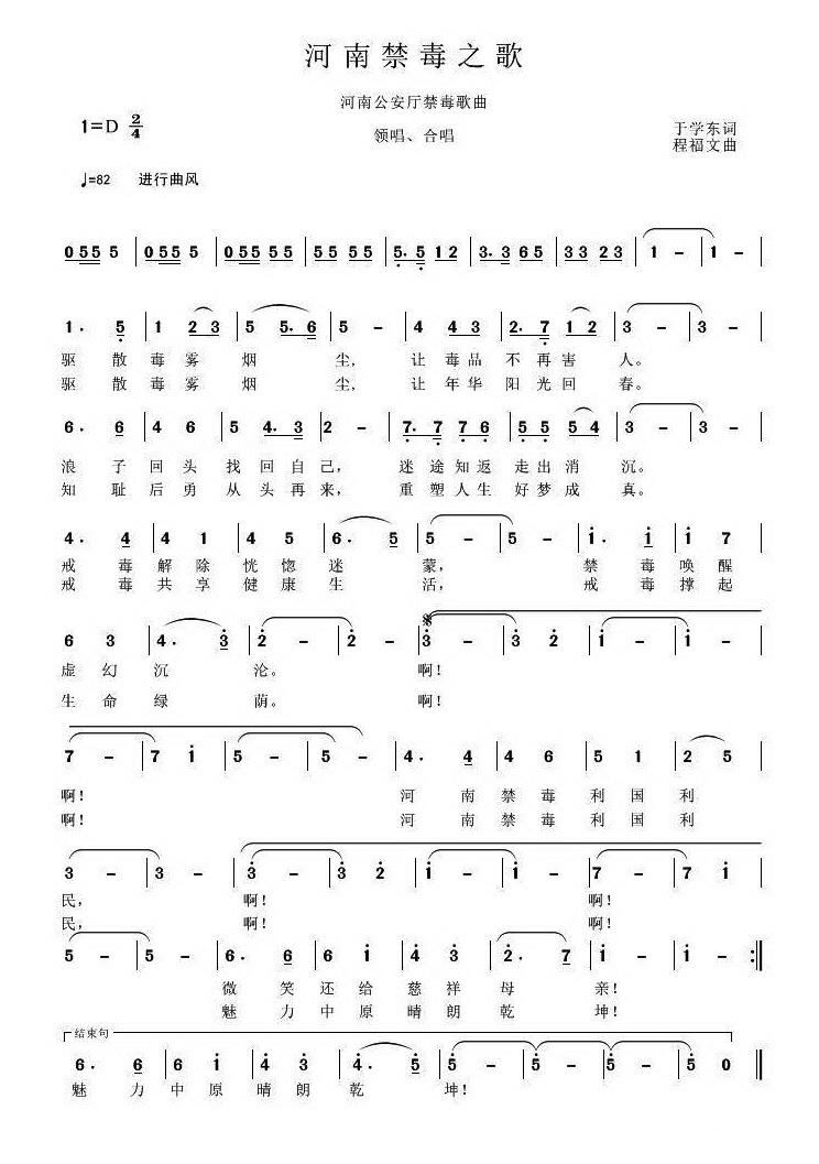 > 河南禁毒之歌