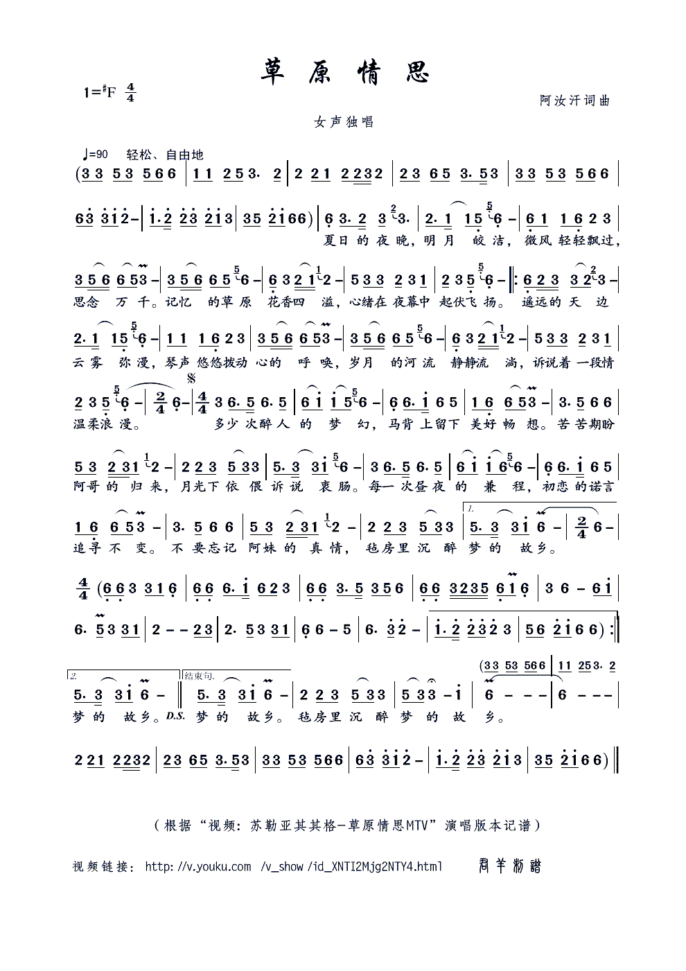草原情思 视频 苏勒亚其其格 草原情思MTV 本