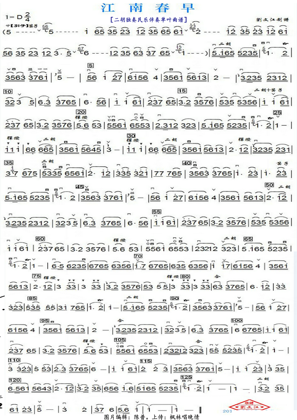 > 江南春早 二胡独奏民乐伴奏单页谱