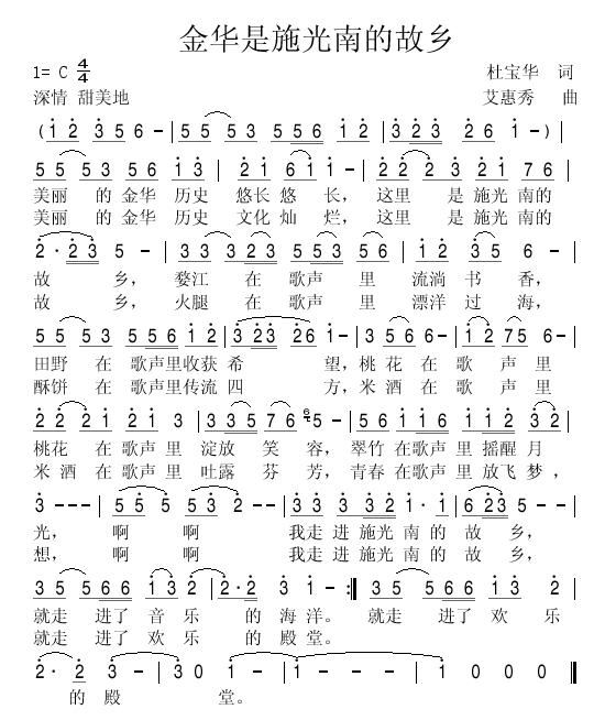 > 金华是施光南的故乡
