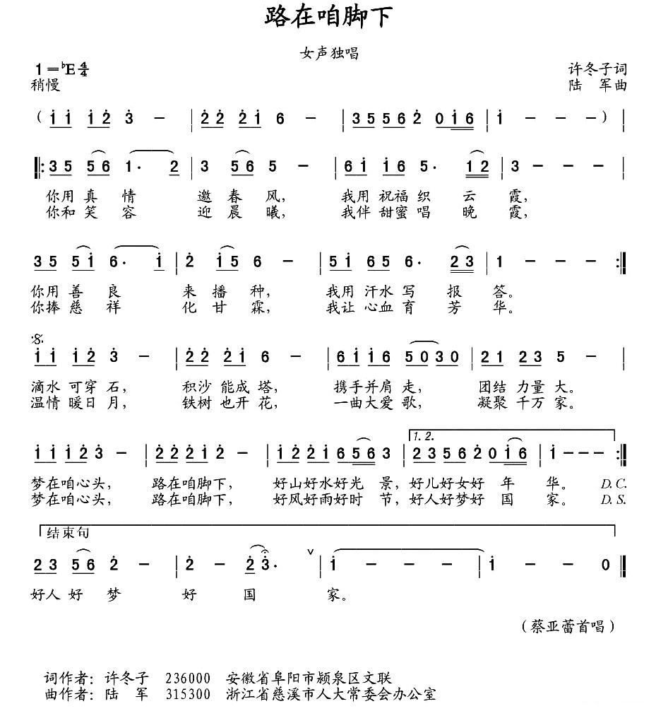 - [歌谱] 路在咱脚下