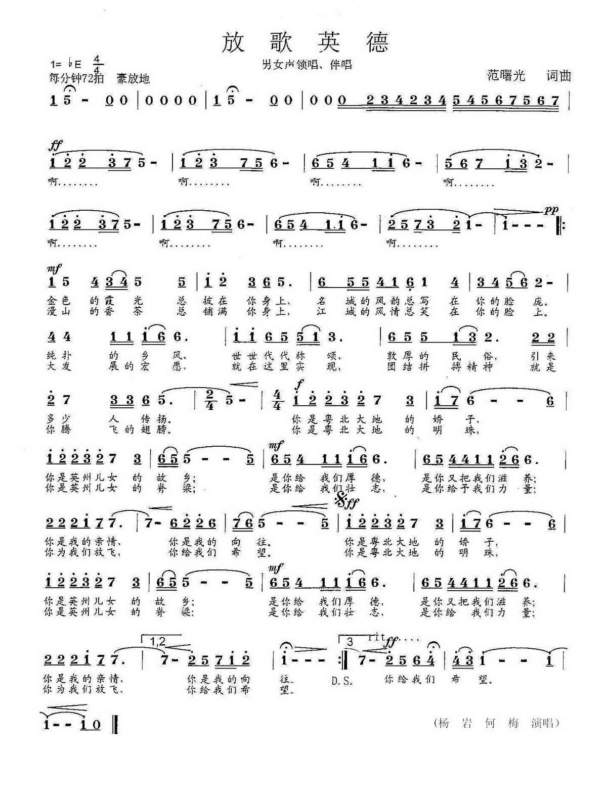 - [歌谱] 英德 好地方