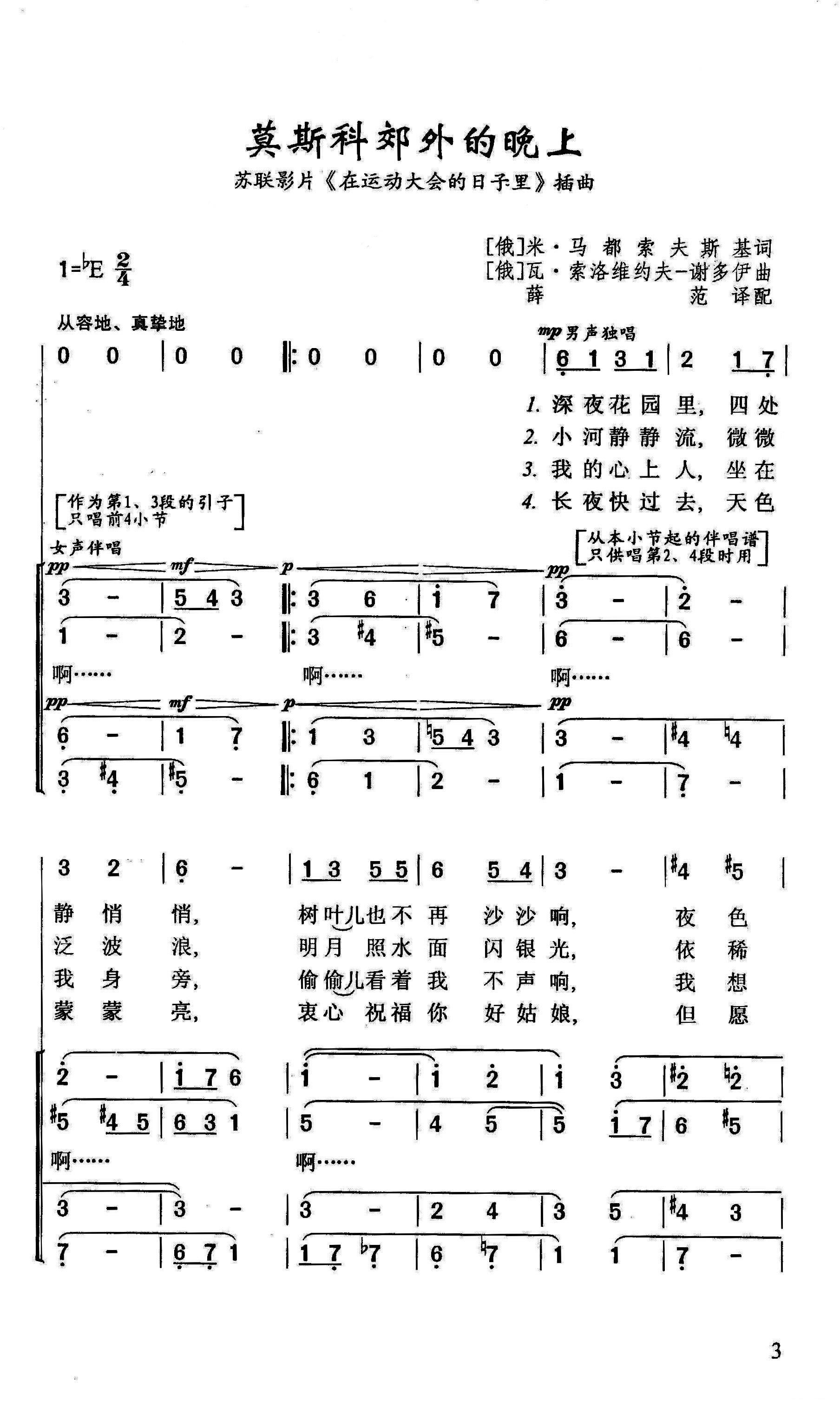 莫斯科郊外的晚上 苏联影片 在运动大会的日子里 插曲