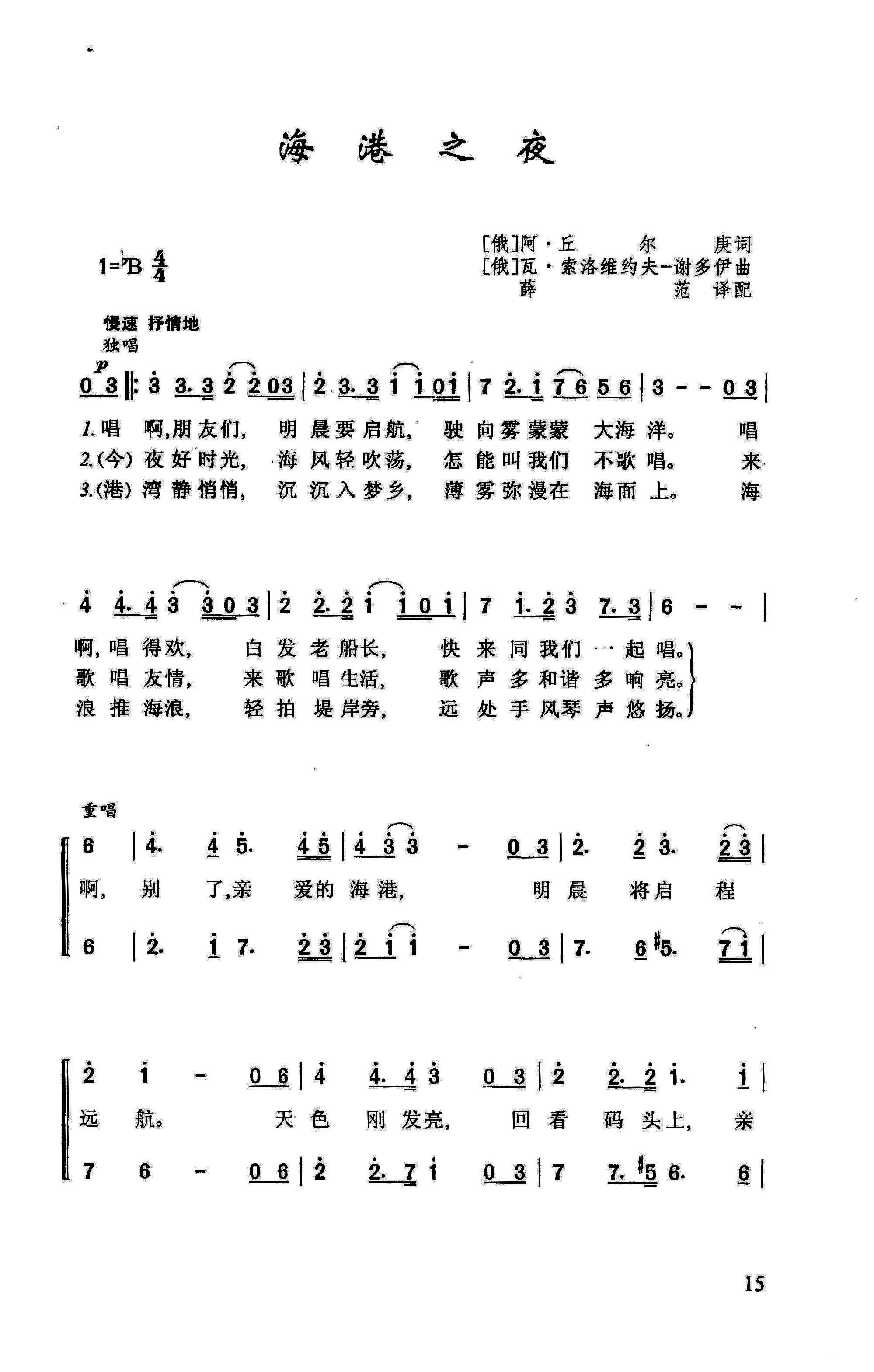 - [歌谱] 海港之夜
