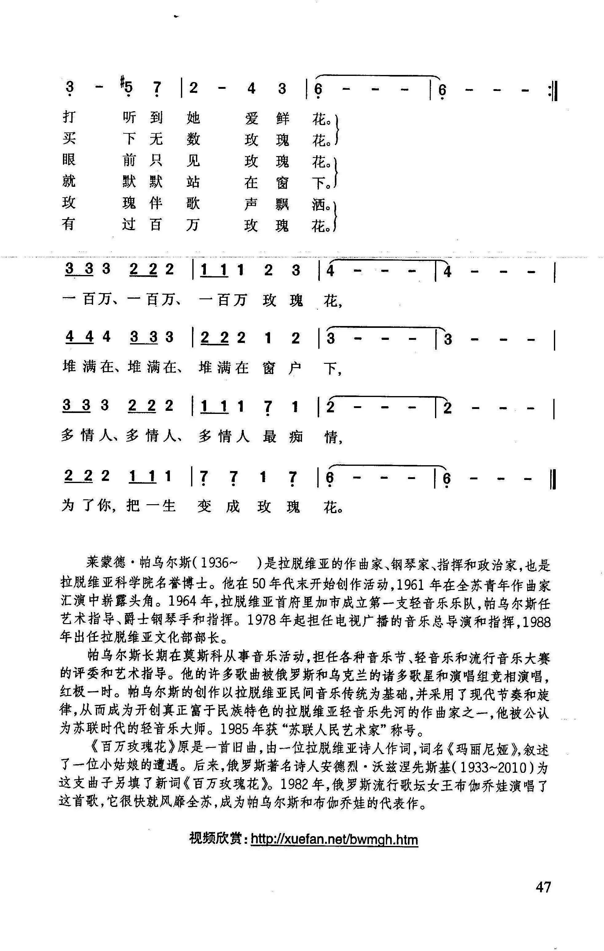 - [歌谱] 百万玫瑰花 前苏联