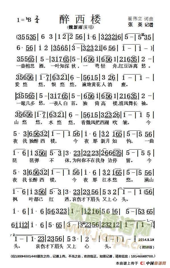 - [歌谱] 醉西楼