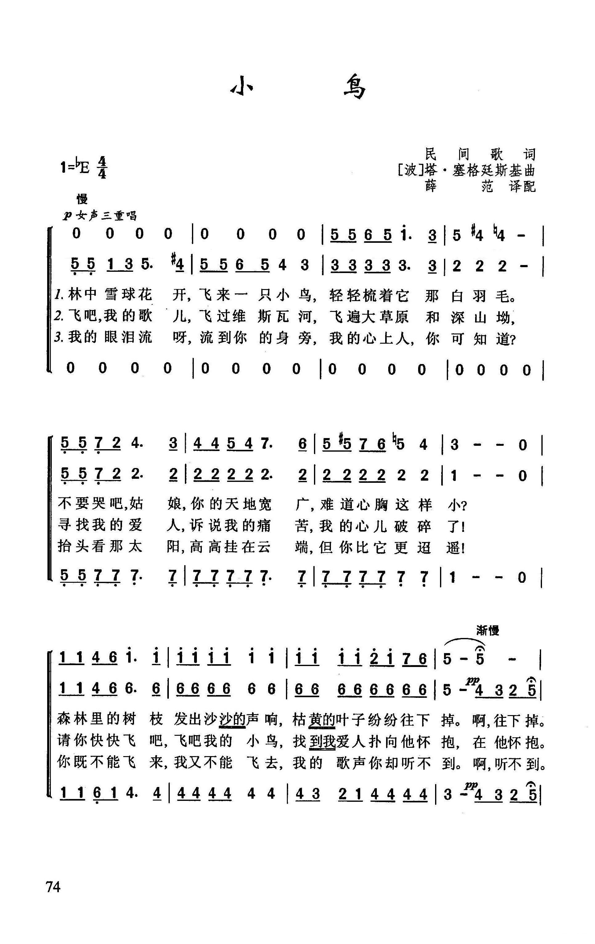 - [歌谱] 小鸟 波兰