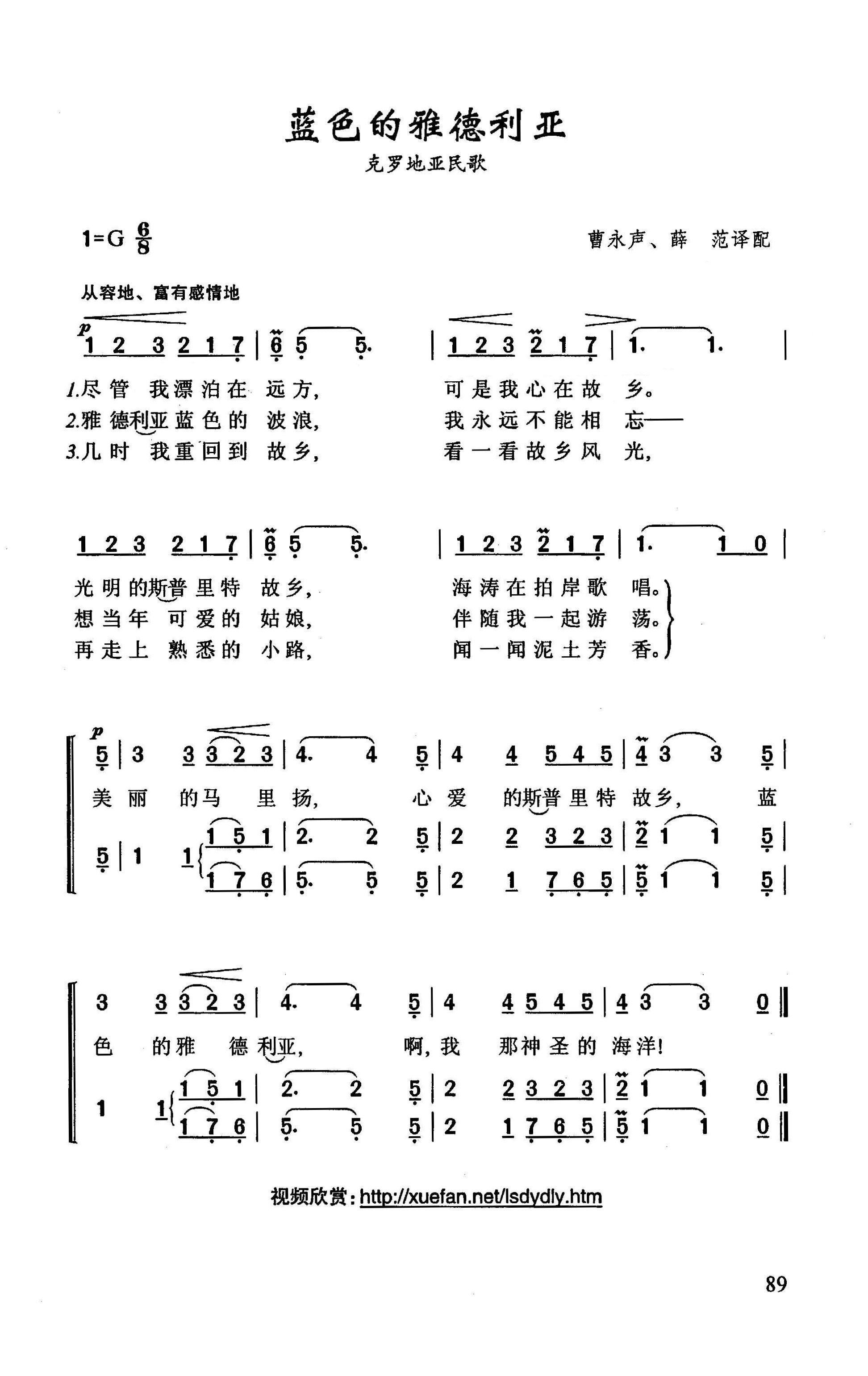 > ?蓝色的雅德利亚 克罗地亚民歌