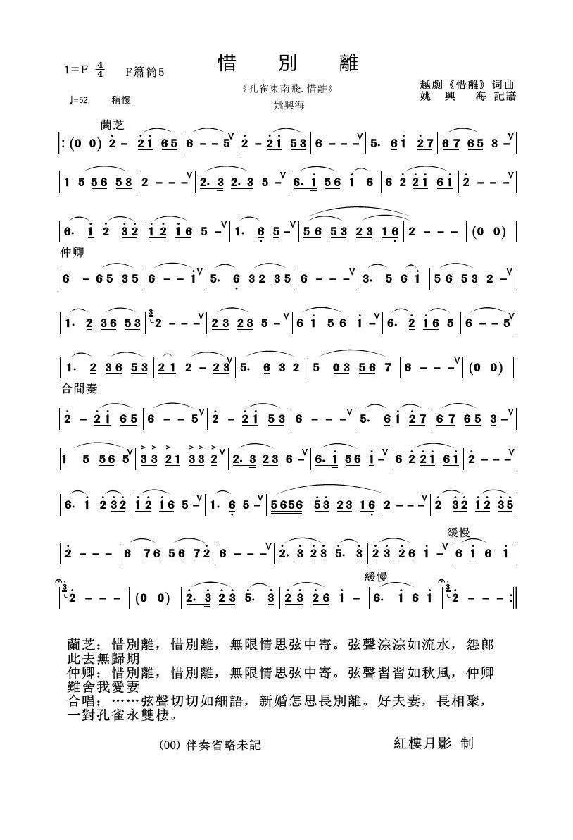 - [歌谱,京剧谱,评剧谱,越剧谱] 越剧 惜别离