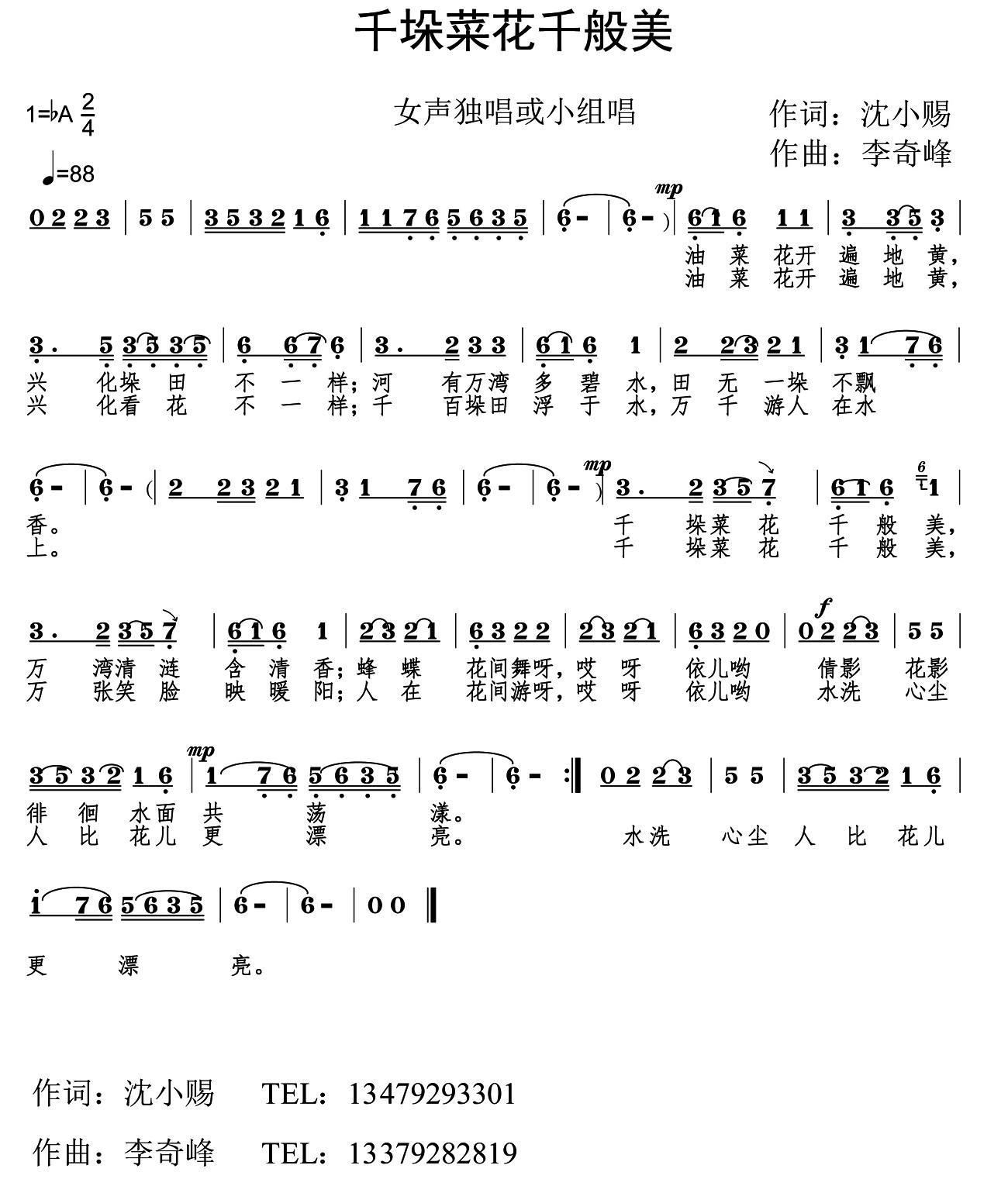 - [歌谱] 千里菜花香