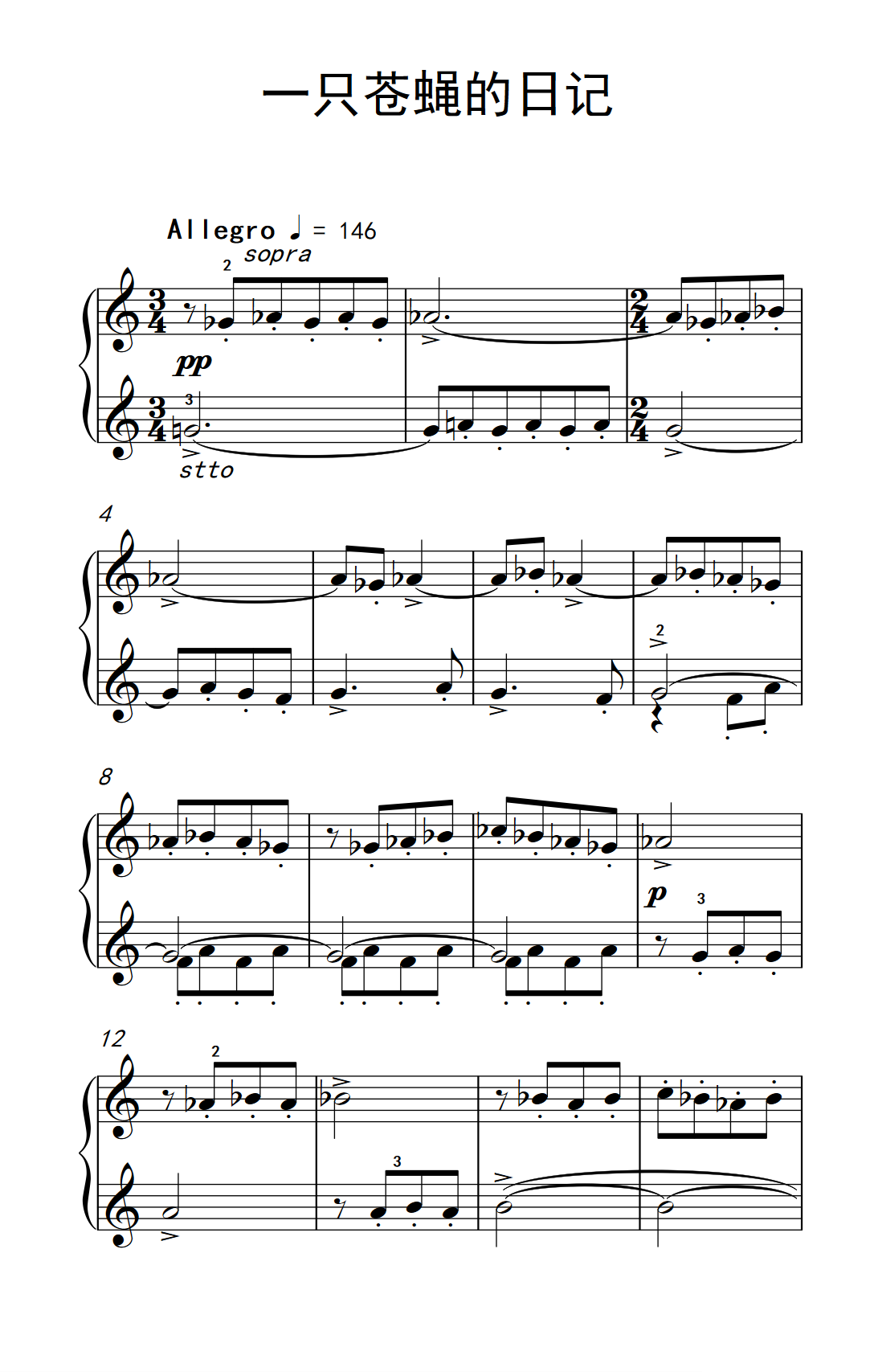 > 一只苍蝇的日记 巴托克 小宇宙 钢琴教程 6
