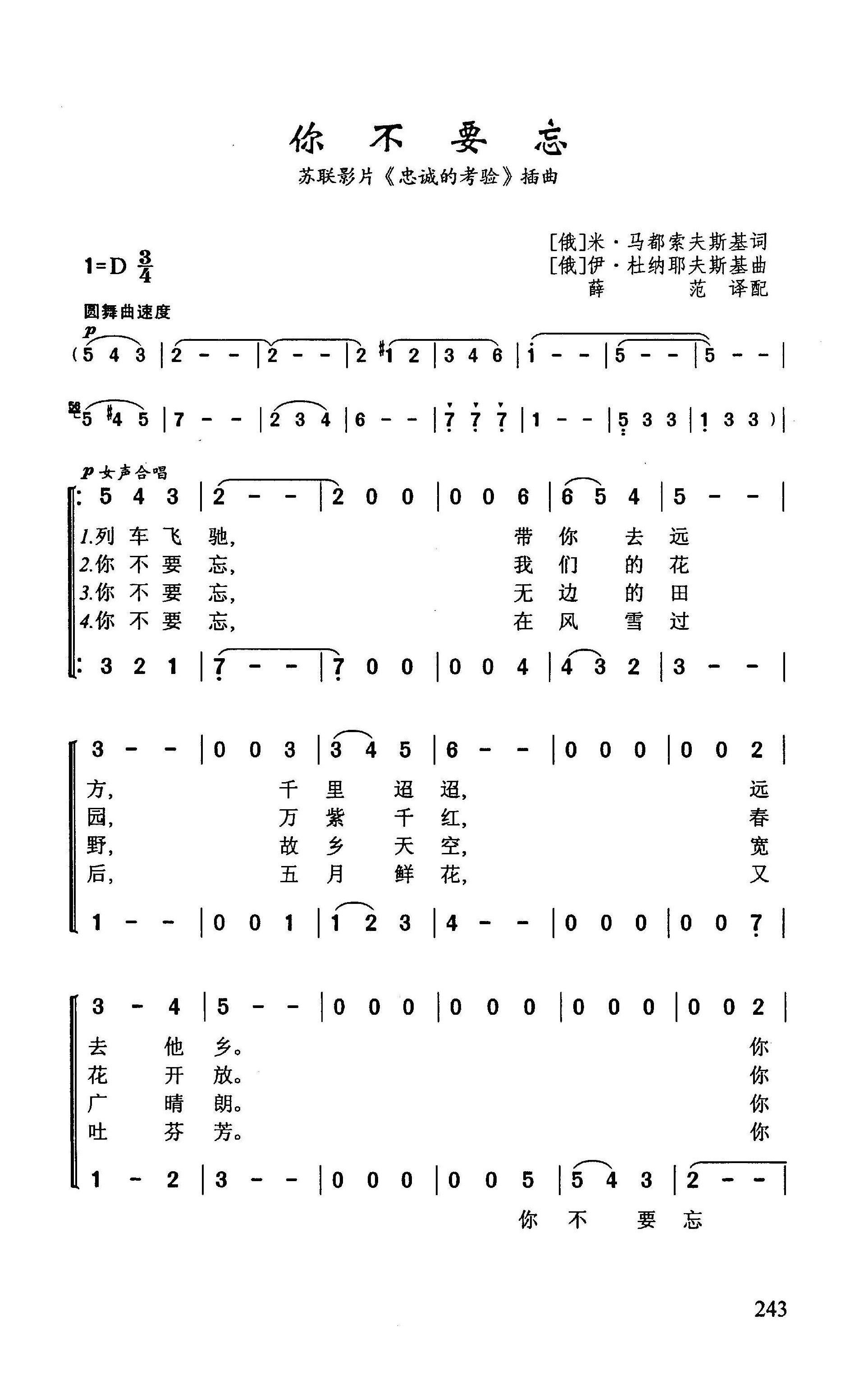 > ?你不要忘 苏联影片 忠诚的考验 插曲