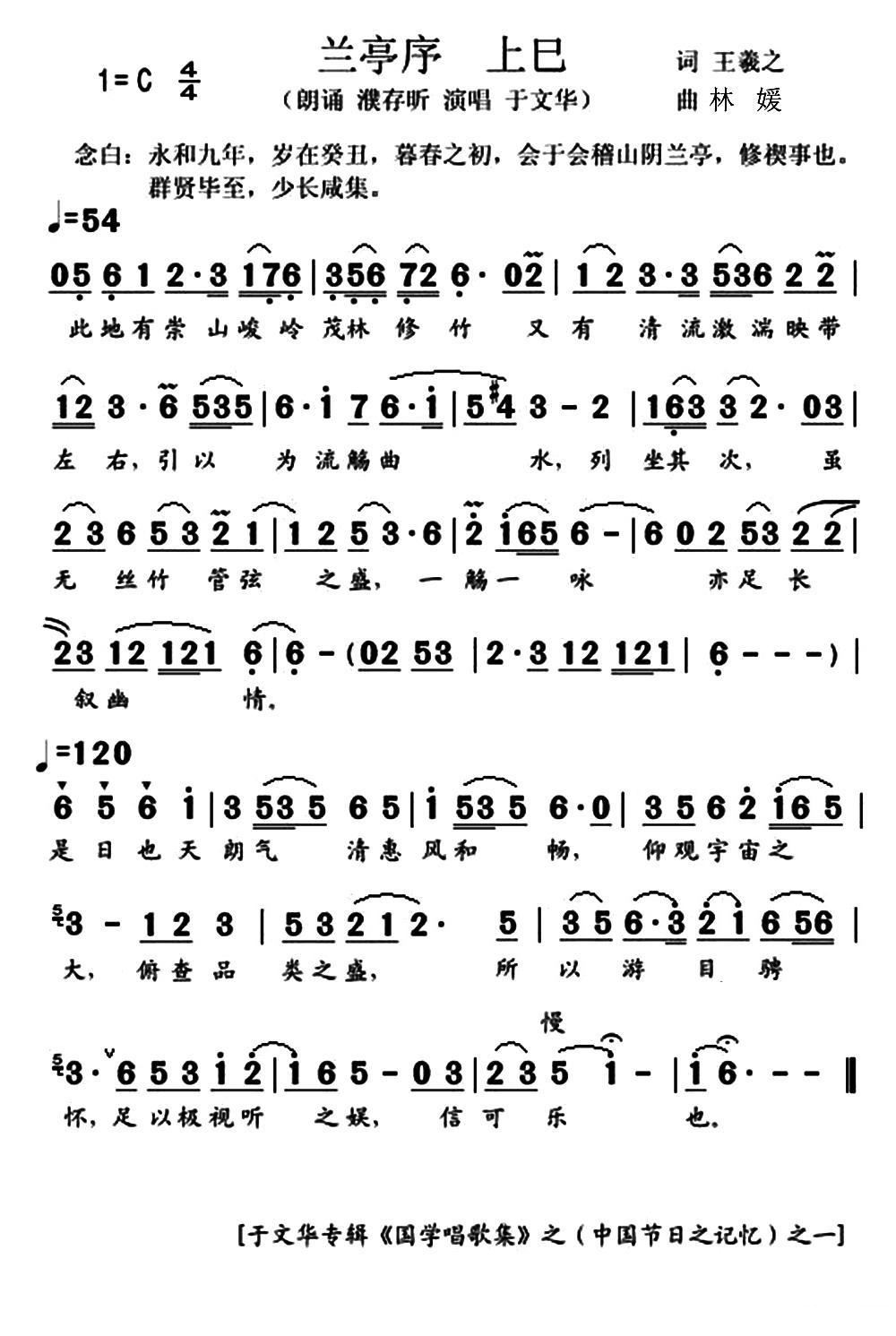 - [歌谱] 兰亭序 于文华国学歌集主打歌 彩谱