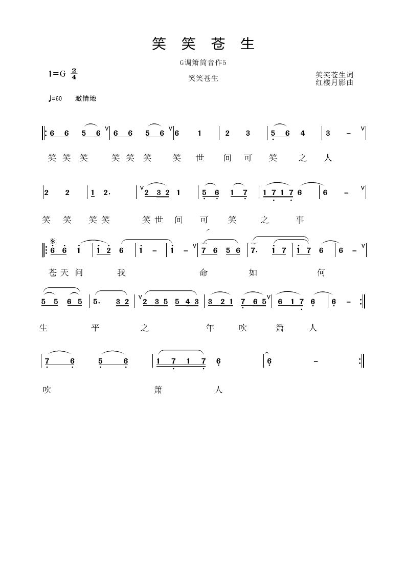 - [歌谱] 笑笑苍生
