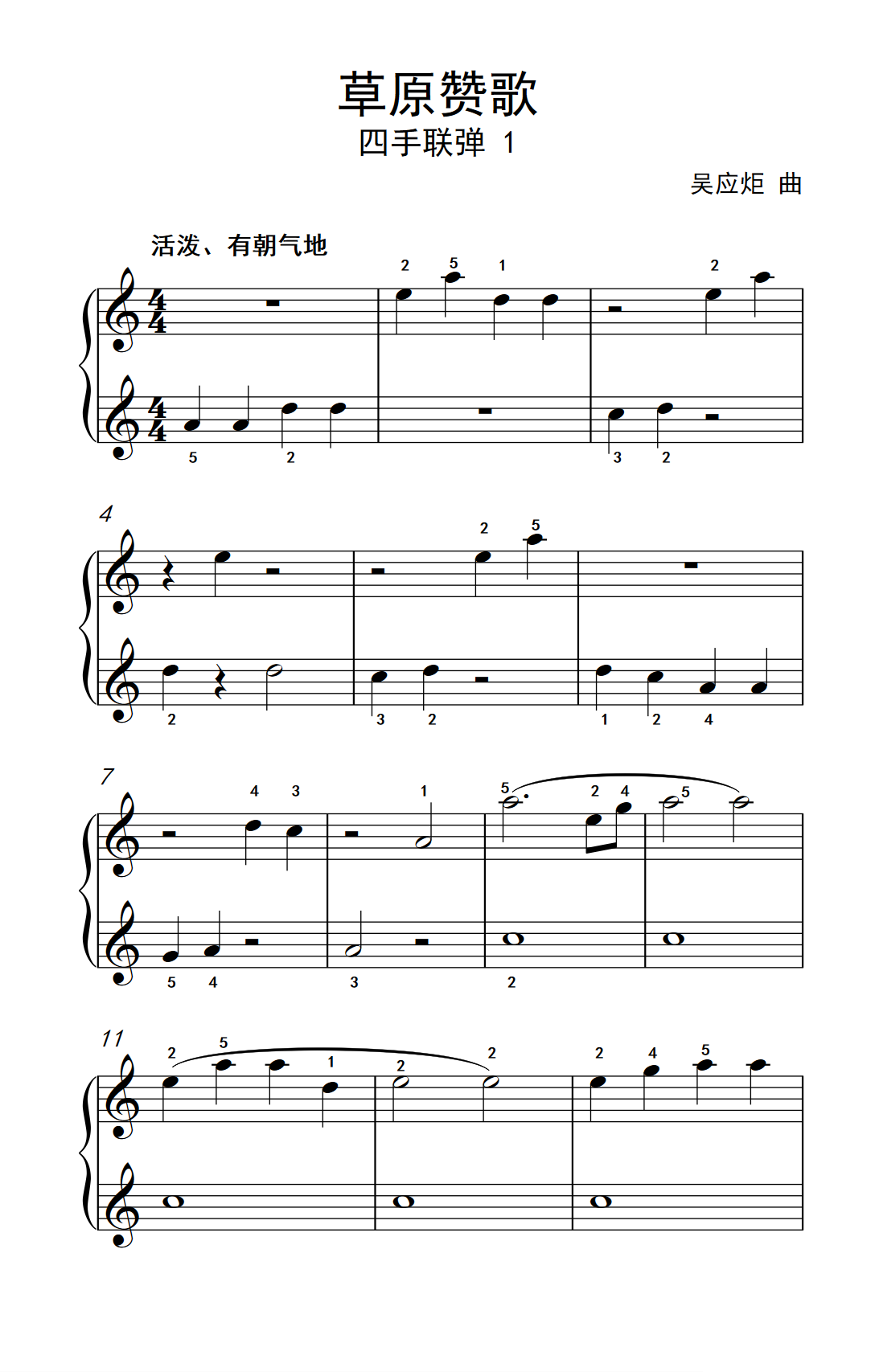 > 草原赞歌 四手联弹 1 约翰 汤普森 成人钢琴教程 第一册