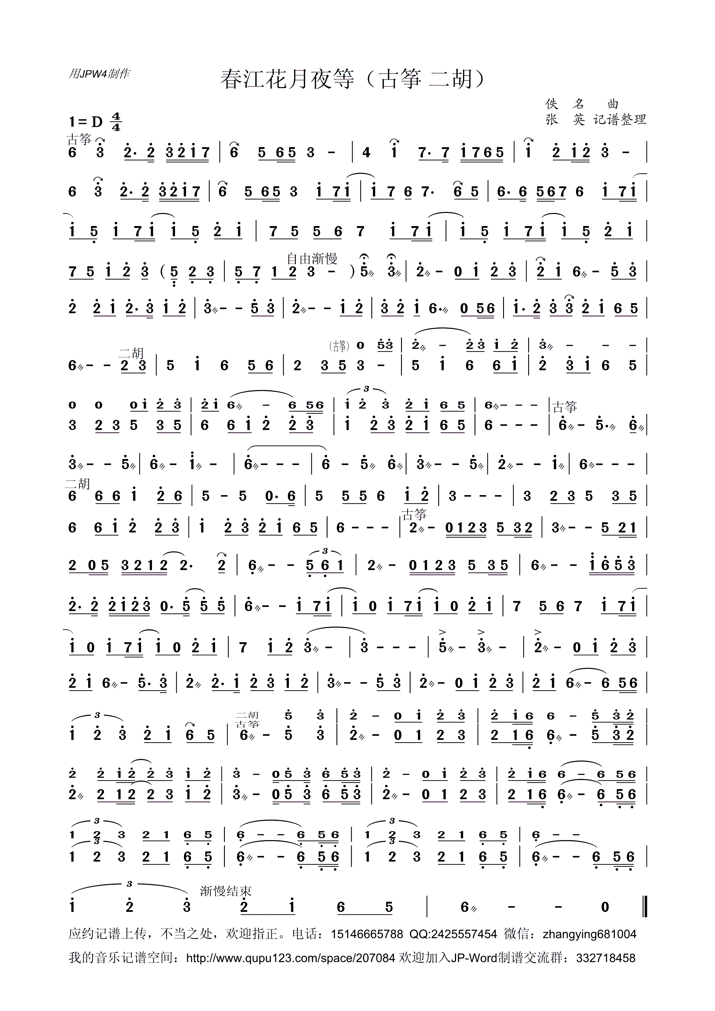 - [分谱,古筝谱,总谱] 春江花月夜 古筝