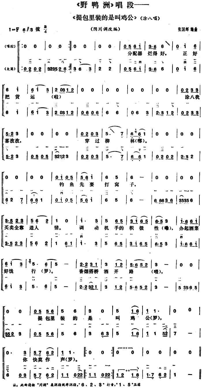 提包里装的是叫鸡公 野鸭洲 涂八唱段 大筒伴奏谱