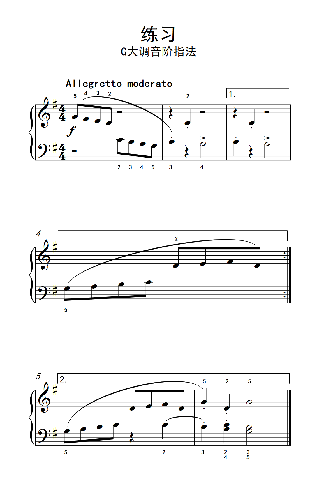 练习 G大调音阶指法 约翰 汤普森 成人钢琴教程 第一册