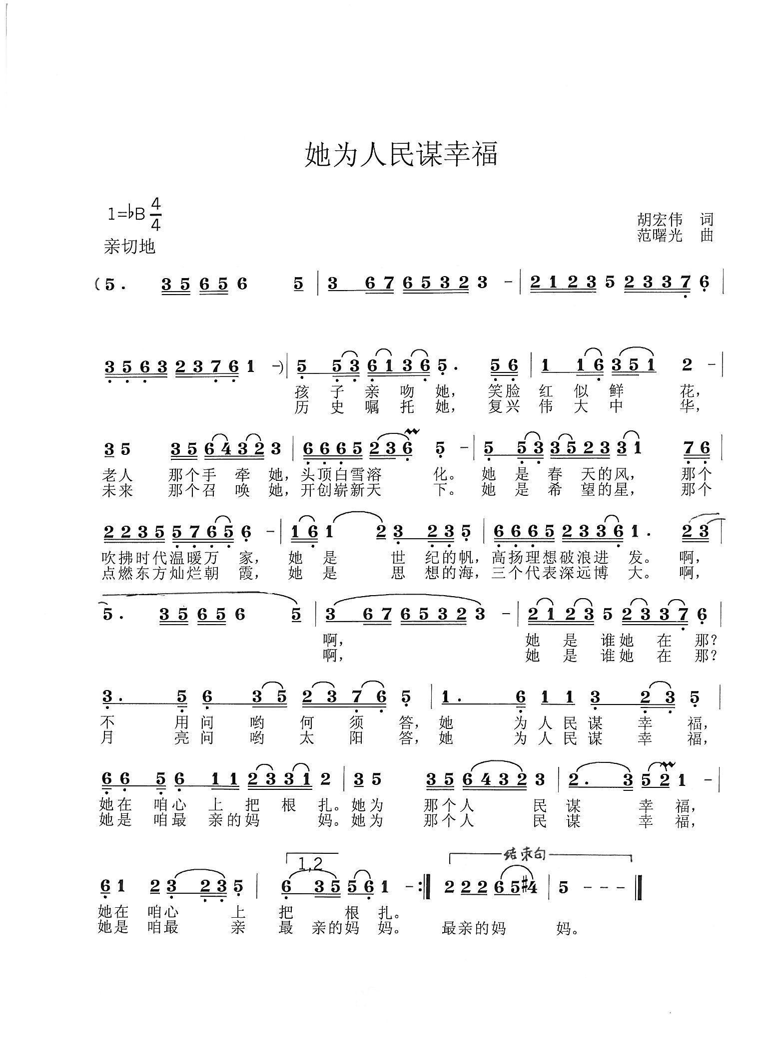 只为人民谋幸福 线 谱