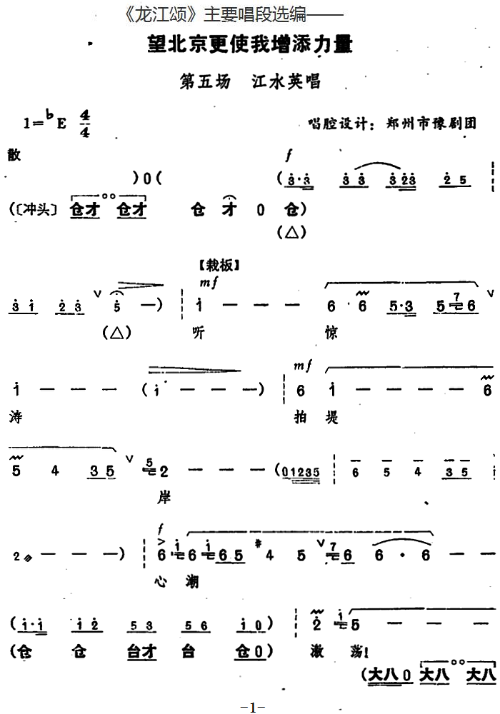 望北京更使我增添力量 龙江颂 江水英唱段 琴谱 京剧唱谱